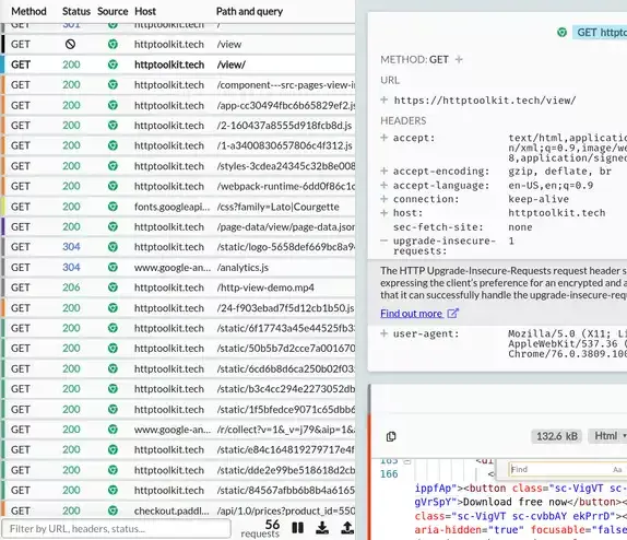 You can use HTTP Toolkit to test and debug websites and web applications. It is like the Network tab of DevTools but much more powerful. It records and captures all the requests and then you see more details about them. For images, it shows you their preview, and if they are static resources such as JavaScript/CSS files then you will see all the loaded text.