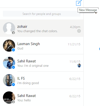 The interface consists of List of people and groups you had conversations with, on the left side.