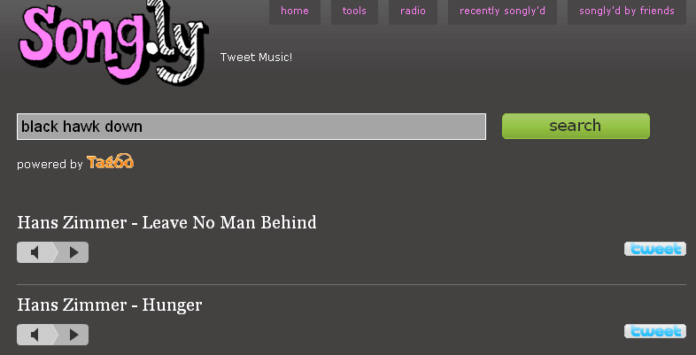 Songly is a really easy, and efficient way to share songs on Twitter. I tried searching for lot of songs, and Songly was able to find each one of them. Pretty good.
