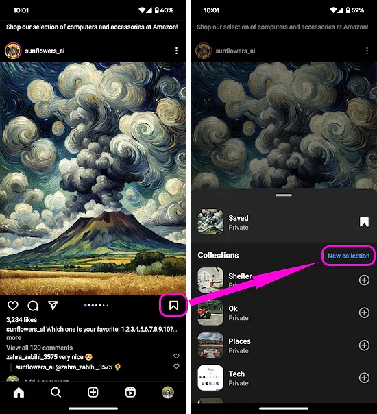 This post explains how to make collaborative collections with friends on Instagram. Instagram has a “Collections” feature that lets you save Instagram posts into a private folder. This feature is accessible through the bookmark button that appears alongside Instagram posts. It is really helpful to save and organize posts and videos in multiple private folders for future reference.