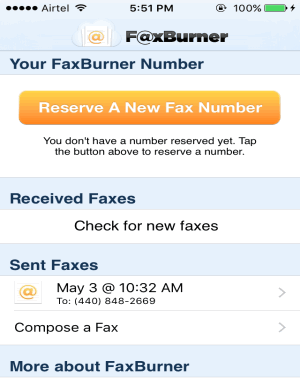 Step 1: After you sign in into the app, you will see various sections like Your FaxBurner Number, received Faxes, and Sent Faxes on the main screen. In the Sent Faxes section, there will be an option named “Compose a Fax” using which you can send free faxes.