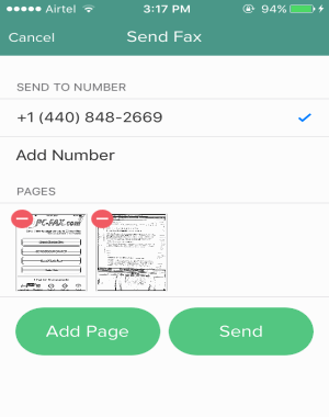 Step 4: You can add multiple photos or text as pages in a single fax. Once you’ve added the pages, simply press the “Send” button to send the fax. The recipient will receive the fax with all the added pages along with a cover page. In the cover page, there will be a watermark of the service along with the date, sender name, and the subject.