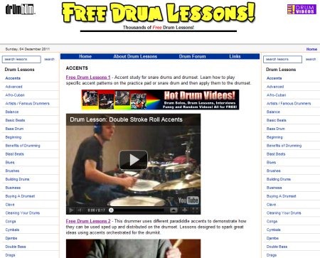 Free Drum Lessons is one of the most popular websites that serves you with free Drum lessons. This free website provides a complete drummer education that includes drum lessons, video drum lessons, famous drummer bios, and more. There is a complete team of drums instructor that helps you keep informed about drums related topics.