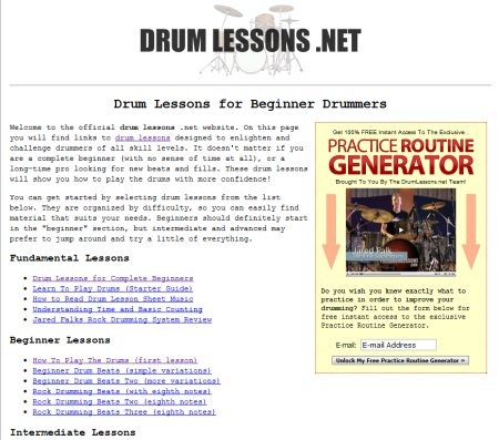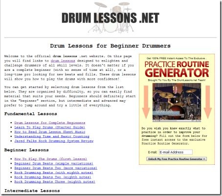 Drum Lessons is another popular website that serves you free Drum Lessons. These free drum lessons show you how to play drum with complete confidence, no matter whether you are a complete beginner, or a long-time drummer looking for new drum beats and fills.