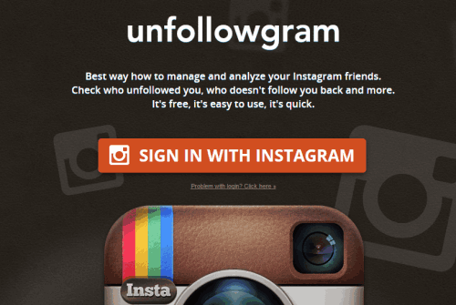Step 1: Click on this link to open the homepage of Unfollowgram. After this, sign in with your Instagram account.