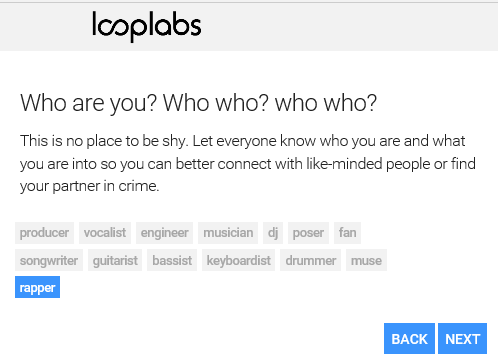 Access the homepage of this website and register for a free account. After sign up, it will prompt you to select some music genres and select whether you are rapper, producer, or song writer, etc. This helps to make your music experience better and fill profile in this website.