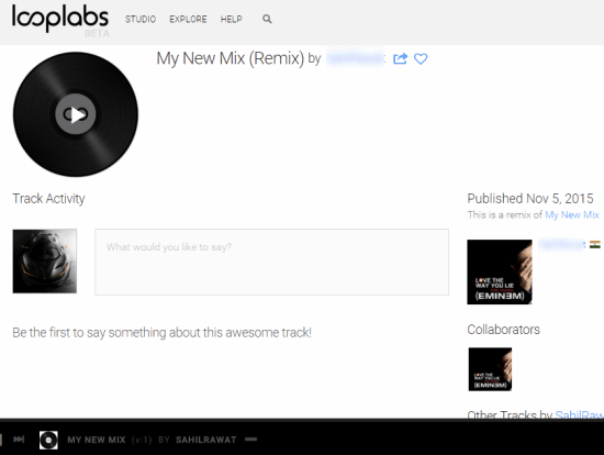 After publishing the music, MP3 is also generated for your music, which you can download to PC. Now you can share the music URL to let others listen to your creation and add comments.