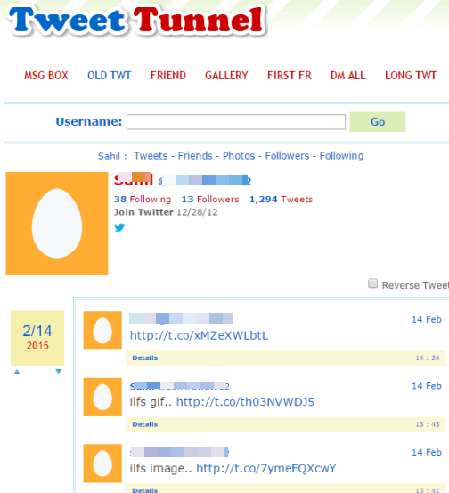 Tweet Tunnel is a feature rich website to find old tweets without logging in to your Twitter account. Apart from finding the old tweets, it lets you mark any tweet favorite, retweet and reply to a tweet. However, you must sign in to use these features.