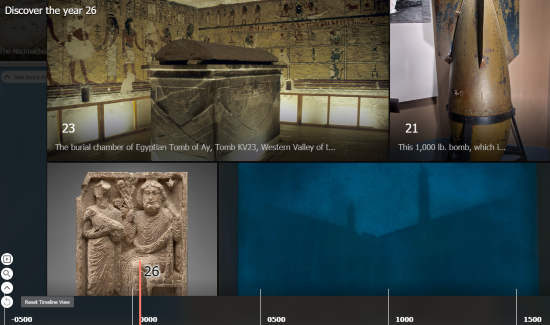 You can zoom in and out the map. On the top area, you will find the images according to the geolocation. Apart from this, you can open autoplay where you can set years for slideshow. Also, you can expand timeline view, reset the timeline, and search epics in the search bar.