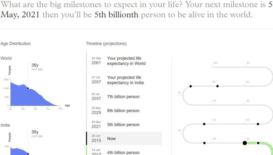 The website is a volunteer effort to make this demographic data available to a wider audience. If you are interested in details which this website provides or you just want to know some statistics for your knowledge, then definitely try out this website. The life expectancy projections were the most interesting. When you try out the option if you were living in a different country the life expectancy projections change a lot.