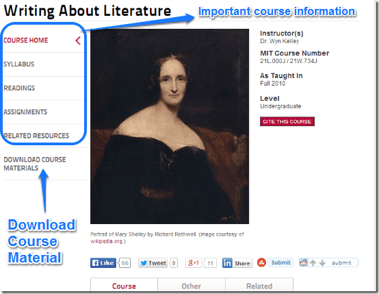 Step 4: Click on the title relevant to the course content you’re searching for, and you’re directed to the course content information page, which has information like the Instructor’s name, syllabus etc., as well the link to download the content. Check out the screenshot below:
