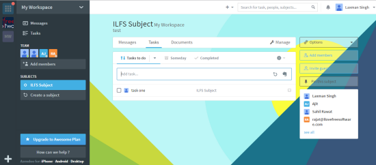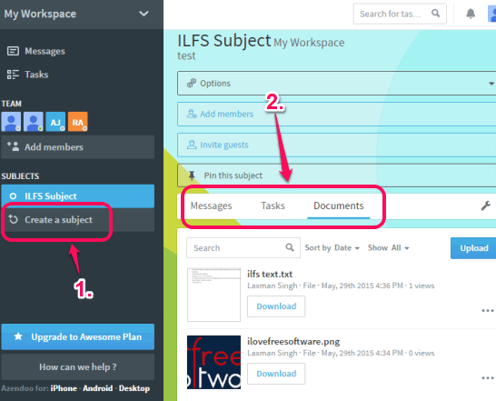 - You can also create a subject for a particular purpose and invite team members to join that subject. In every individual subject, you and team members can add messages, give comments on messages, add tasks, and share documents. Team members can also download the uploaded documents.