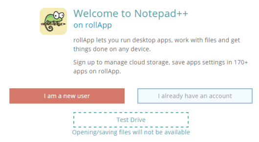 rollApp provides virtual environment to run many popular desktop software or applications online. You can use any web browser to let rollApp run supported desktop software. More than 170 software are supported by this service. You can use any desktop software supported by this service without any sign in. However, to save your files virtually on cloud and save apps settings, you can sign in for free using your Google or Facebook account.