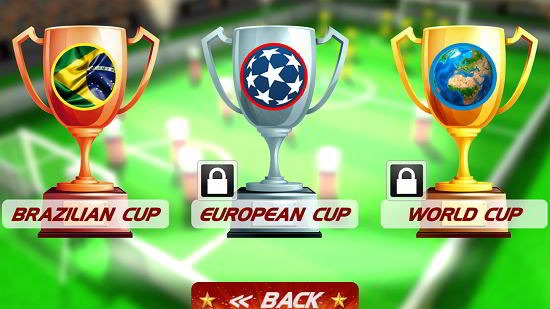 Click on the Play button in the above menu interface to be taken to the next screen which happens to be the type of game (Cup) selection screen. Initially only the Brazilian Cup is unlocked, but you can unlock more cups by playing games and winning.![]()