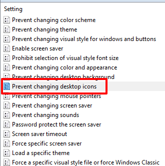 Step 3: The right part of Group Policy interface will show a lot of options. You have to double-click the “Prevent changing desktop icons“.