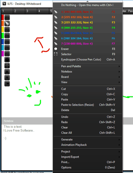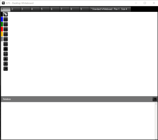 Grab the setup of this software and install it. Its interface is very simple. You will see numbers (1-9) that are actually the boards. The left section includes pens with different colors, highlighter, eraser, and other tools.