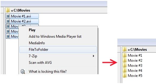 FileToFolder is an interesting free software that can create folders for selected files, and move each file into respective folder. Once you install FileToFolder, it integrates with context menu of Windows. Then, when you right click on a group of files, you can select FileToFolder option from Context Menu. Clicking on this option will create folders for each of the selected file.