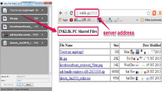 Easy File Share is a free file sharing application that is used to share files/folders with multiple devices over the same network. Using its interface, it lets you create a server on a device (say PC) in which you can add files and other devices (client) can download added files by accessing server address on your web browser. Easy File Share could be helpful for offices or for home networks where people can share files without using flash drive or email files to share with each other again and again.