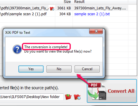 As soon as the conversion process is completed, it will prompt you to open text files. This is a useful feature as you don’t have to move to the destination folder manually.
