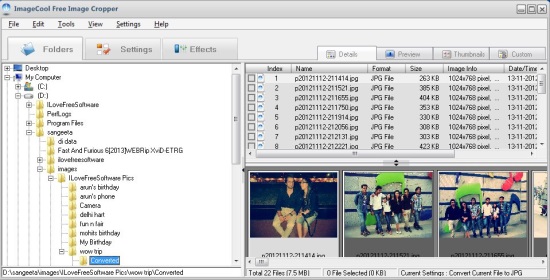 ImageCool Free Image Cropper is a free photo editing software that lets you perform bunch of useful operations on your digital photos. It lets you open and view images, convert them to various popular image file formats, rename them using keywords, crop them to specific ratio, apply various effects on them, or turn them into slideshow. ImageCool Free Image Cropper is quite handy and easy to use, and on top of all is absolutely free.