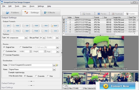 As soon as you choose a source folder from the folder explorer, all the photos inside that folder will automatically be added to the program window with a checkbox against their entries. You can simply check the photos you want to edit and move on to adjust the settings. Some of the supported output formats also provides additional adjustments like compression or quality settings. Plus you can resize photos based on different measurement units like pixels, inch, etc.