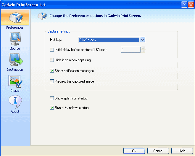 Gadwin PrintScreen is a nice free screen capture utility. I love it because of its simplicity to use, and the options that it provides. It can integrate with your Print-Scr button, so whenever you hit that button, Gadwin PrintScreen will come up (you can integrate it with some other Hot key combination as well, instead of Print-Scr). After that, you can select any area of screen using cross hairs, or select active window or the whole desktop. For your selection, Gadwin PrintScreen gives you an option to either preview your captured area and make modifications in that, if any, or you can configure it to directly save it to a file or directly open it in your favorite editor. Gadwin PrintScreen even gives you an option to capture your mouse cursor along with the image.