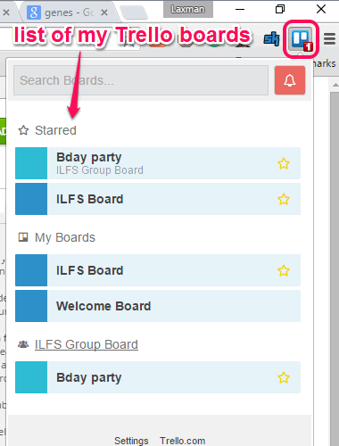 In the above screenshot, you can see the list of my Trello boards in the pop-up of this Chrome extension.