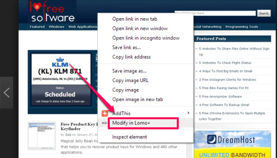 Lomo+ is a free photo editing app for Google Chrome that lets you edit images available on websites using various filters, like vintage filters. Consider it like Instagram for Chrome. If you are on any website and you like an image on that, just right click on that image and choose “Modify in Lomo+” from right-click context menu. Once you do that, the image will be opened in Lomo+ app within Chrome and you will be able to modify it using various available filters. Once you are done with the modification, you can save the image to your PC.