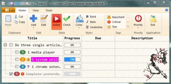 After adding the tasks, you can mark them as active, important, critical, etc., or set a level of priority to each of them. These colorful tags will help you in visually analyzing the importance of each task.
