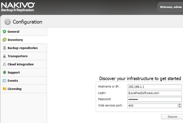 Inventory option from the left sidebar allows you to find all the virtual appliances that you have running on the local network where Nakivo is installed.