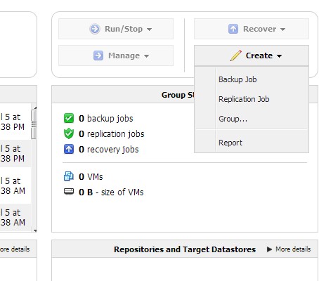When you exit the configuration backup job management overview should come up. By clicking on the Create drop down menu you’ll be able to create new backups. First click on Create >> Backup Job, then select the previously added virtual appliances. You’ll have to go through several other steps, select what’s gonna be backed up, which components, set the backup job execution time and date, etc.