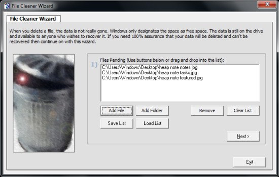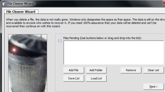- Select Files: First of all, you need to select files you want to wipe out permanently from your system. You can do this either by dragging and dropping files to the program’s interface, or by browsing files or folders from your system. After adding files, you need to click on the “Next” button to go to the next step.