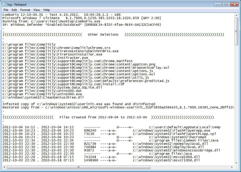 During startup, this free malware removal tool will check for updates, you’ll also have to accept the usage agreement. Once you do all that, you should see a blue command prompt window like the one that you can see on the first image above. Scan might take a bit longer if you have a big hard drive with a lot of files, or if a massive infection is present. Upon completion, you’ll immediately be presented with a textual log file opened in Notepad, or any other textual editor that you’re using.