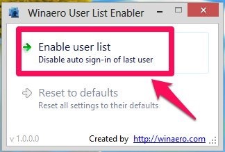 It would be more useful for the users if Windows 8 instead of automatically signing in last user, brought up the list of users of the computer and enabled the users to login more faster. So follow this tutorial learn how you can stop Windows 8 from automatically signing in last user with the application called user list enabler for Windows 8. The good thing about this little utility is that it does not change any registry, change access rights in windows, it use the tools and features that are already built into Windows in such a manner that this application is safe to use.