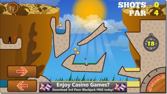 Super Golf Land is a free Windows 8 Golf game app. Using this Windows 8 app, you can play golf in Windows 8 devices. This game app is a physics based game app, and basically follows the gravitational rule; that is a thing that goes up does comes down. This is one of the best free golf game for Windows 8 and is very popular among Windows 8 users. There are total of 72 holes in the game and the app promises that there will be more! There 3 different worlds and each consists of different courses. The objective of the game is to put the ball in the hole within the given number of Pars (number of strokes).