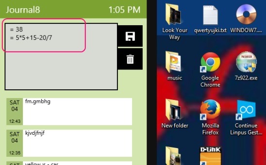 This Windows 8 journal app makes a very good use of snapped mode feature of Windows 8. When the app is in snapped mode, you can use a simple calculator inside the app, to do basic calculations. Plus, it also shows you the current system time, and allows you to create a quick timer. And what’s more? The app supports some special but easy commands using which you can quickly launch default browser to search for images, Wikipedia, Amazon etc.