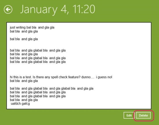 The app also allows you to delete unwanted entries. All you have to do is, open the entry by clicking on it and, click on Delete button.