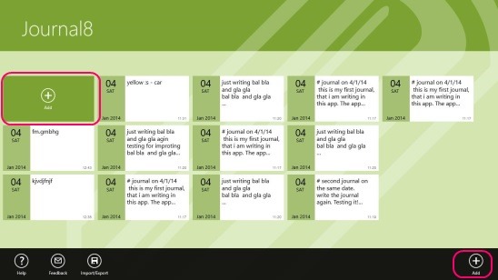 Journal8 is a free Windows 8 journal app. It’s a handy journal app for Windows 8, that helps you in keeping a digital diary in Windows 8 devices. You can add new entries on date basis, and then edit them, and save them. The app also allows you to import and export all the journal entries in .Xml file format. The app gives you a plain slate, ready to be written. There’s no character limit to the entries, and it supports the basic copy paste features.