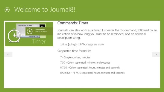 The app specifies some set of commands, using which you can convert this Windows 8 journal app into timer, calculator, or a quick browser launcher. The app lists them in the tutorial section.