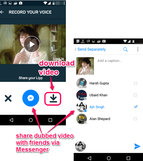 Lipp doesn’t store dubbed videos to the database. However, you can download it on your smartphone. Apart from this, you can also share your dubbed video with friends using Facebook messenger. Almost all features of Dubsmash are covered in this app, but instead of recording short videos with sounds, you will add own voice over a video.