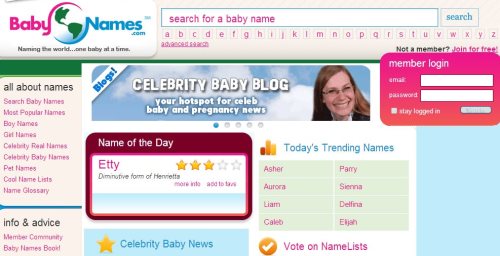 The first website on our list is babynames.com. The website lets you search a baby name by first letter, or you can also go through popular names for both boys and girls. You can also search for names according to the country you are in. The website features one baby name on the homepage as the “name of the day”. Next to this feature you will find a section for trending names for that particular day. You can also read latest celebrity baby news on the website. If you like the website then you can create an account and become a member to receive updates from the website.