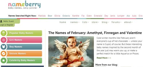 Next on the list is Nameberry.com to find baby names. The website features a few names inspired by the current month on the homepage of the website. Apart from this the website also shows most popular names for that particular day. You can search for baby names from different categories like popular names, boys names, girls names, unisex names, celebrity baby names, etc. You can also provide your email address on the website to receive emails with baby names specially picked according to your preferences. If you register and become a member of the website, then you can also discuss about names with other members of the website through the forum.