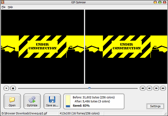 Easily the best looking application of the bunch, GIFmicro is a powerhouse tool that lets you compress animated GIF images to a fraction of their original sizes. Having a lean and intuitive interface, GIFmicro is pretty easy to use, and includes quite a bunch of options. Essentially, it consists of two compression modes; the lossless compression reduces the size without degrading the quality (by deleting the unnecessary image data), whereas the lossy one achieves even better compression, albeit by degrading the quality a little bit. Using GIFmicro is pretty straightforward. Load up the GIF images you want to compress (batch processing is supported), specify the optimization options manually (via the expandable sidebar on the right), and click the Optimize icon. As you do that, GIFmicro will compress the GIFs, and display the %age reduction in size.