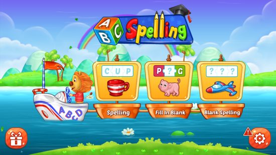 Kids Spelling Games is a nice app to teach kids how to spell. The home page of the app has a big button indicating you to play the game. There are some settings options you can change if you like. Click on the play button to start playing the game. Now you will get a screen to choose which game you want to play matching game, missing letters, or spelling game. The difficulty mode of the game can also be adjusted from the right corner.