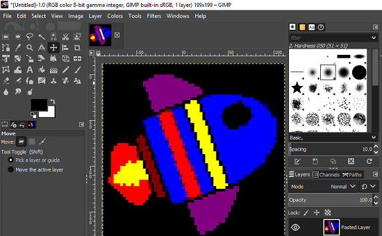 You can get this software from the above link and then install it on your PC. Next, open it up and then you can start creating or editing a bitmap image in it. The various editing tools are aligned on the right side of this software. You can select any tool and then you can make the corresponding edits in your image. Also, you can use some other advanced tools for manipulating the bitmap image like layers, color filters to manipulate the color levels in the image.
