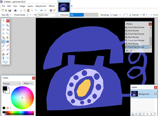 Paint.net is actually a powerful and a free PSD editor software that you can use for creating and editing bitmap images too. There are tons of drawing and editing tools in it that you can use to create bitmap art and save it. It is a layer based image editor with basic and advanced image editing tools. It offers you drawing tools like paint brush, lines, curves, shapes, arrows, color fill, color picker, and many other tools. And when it comes to editing, you can use the tools like select tool, lasso tool, magic wand, and some others. It has all the tools that you can think of plus the best part about this software is that its functionality can be further enhanced using plugins.