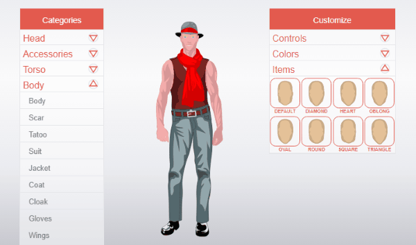 You can simply go to the homepage of this website and then select a male or female body. After that, you will see the customization options on the left of the avatar editor and you can design the avatar as you desire. You can change the color for each element or accessory which you have added. After you have done customizing the avatar, you can download it as an SVG file to your PC.