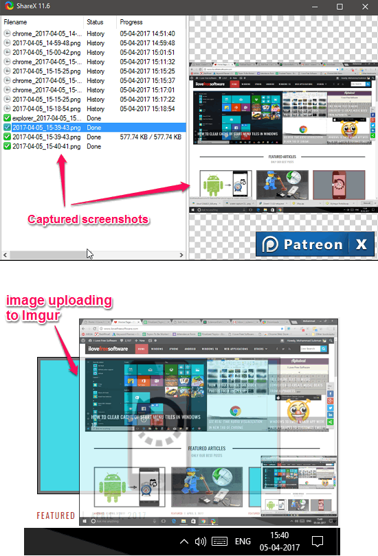 ShareX is a free screenshot software that can upload to Imgur. You can take screenshot via it in any shape and directly upload it to Imgur. Also, it is a very lightweight screenshot software that can do that in an easy way. ShareX allows you to take screenshot of any window, any screen area and a very nice feature of this software is that it can extract text from any area of a screen that you capture through it. Also, not only Imgur, ShareX can upload the screenshot to Dropbox, ImageShack, Tinybin, Flickr, etc. You can read its detailed review here. This is also one of the few software that can save screenshot as PDF.