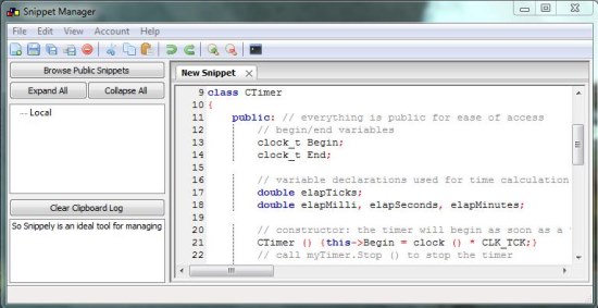 A code snippet is a small piece of code that you can reuse in your source code to speed up programming. If you are a developer, you might find it useful to have a tool ready to keep all your code snippets in an organized way. So that you can easily maintain a pool of reusable pieces of code, without scratching your head to fire up notepad again and again and copy-pasting code in it that you want to store for future.