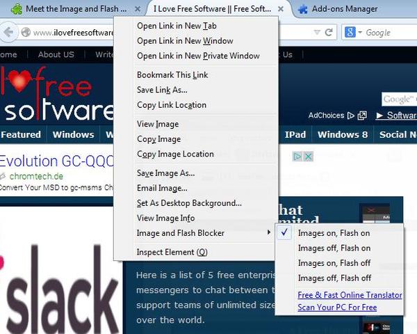 As you can see from the name of this addon, here you get both an image blocker and a flash blocker app.
